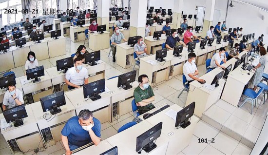 天津市堅持新提任處級黨政領(lǐng)導(dǎo)職務(wù)政治理論水平任職資格考試制度,通過“以考促學(xué)”、“凡提必考”,引導(dǎo)年輕干部自覺學(xué)懂弄通做實習(xí)近平新時代中國特色社會主義思想。圖為天津市新提任處級黨政領(lǐng)導(dǎo)職務(wù)政治理論水平任職資格考試現(xiàn)場。 天津市委組織部供圖